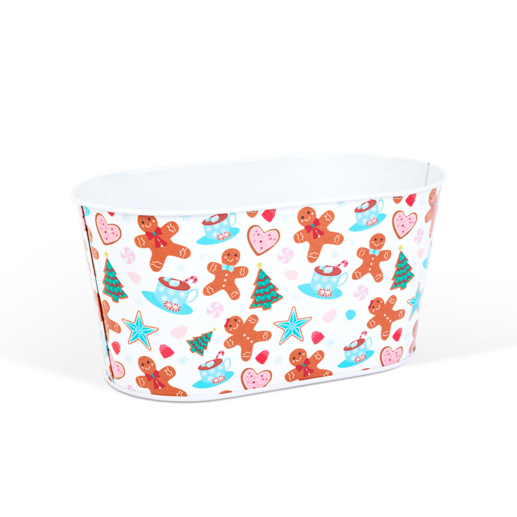 Karácsonyi fém kosár - mézeskalács mintás - 19 x 11,5 x 9,5 cm