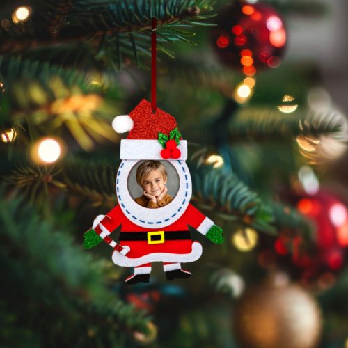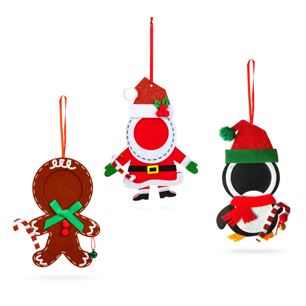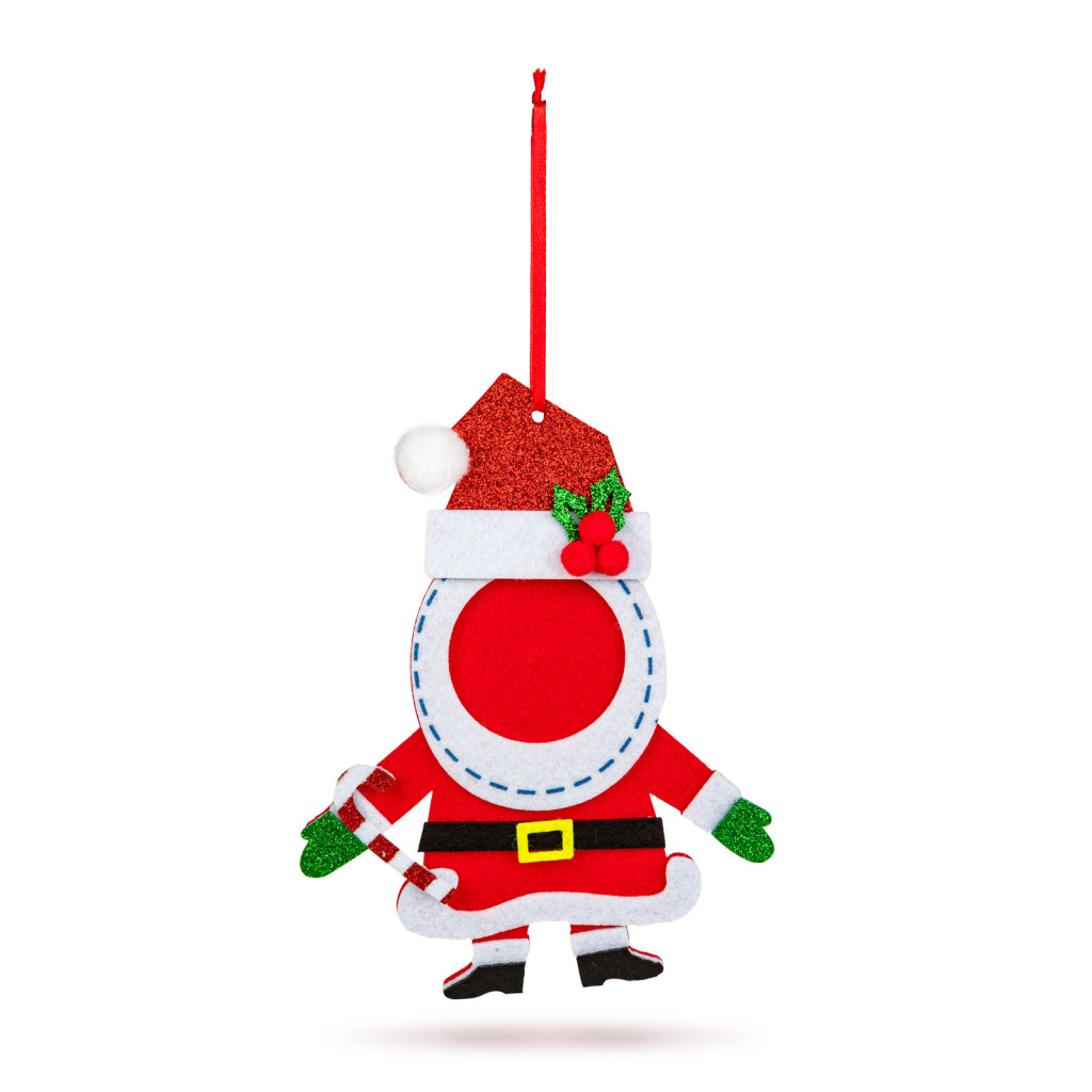 Karácsonyi fénykép dekoráció - filc - csengettyűvel - akasztható - 13 x 17 cm - 3 féle