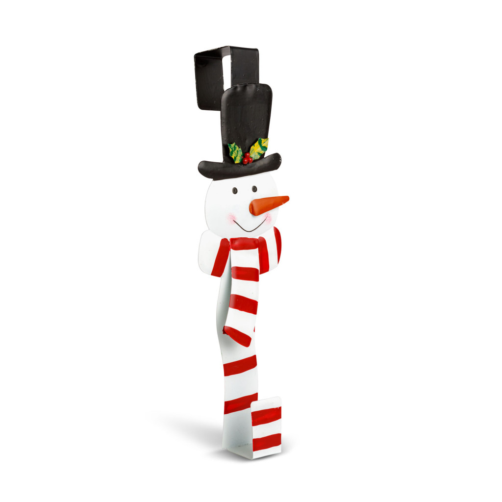 Dekorálja otthonát, irodáját ezzel az ünnepi hangulatú karácsonyi ajtódísz, koszorú tartóval! A vidám hóember figurával díszített, fém akasztó praktikus és dekoratív megoldás az ajtódíszek felhelyezésére. Jól mutat bármely bejárati ajtó ünnepi díszbe öltöztetésénél.