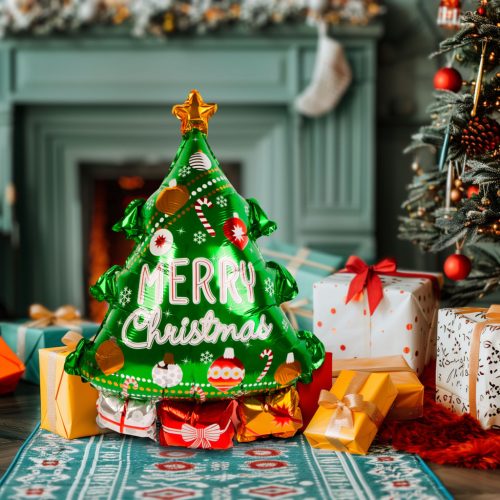 Karácsonyi lufi - alumínium fólia - fenyőfa - 80 x 55 cm