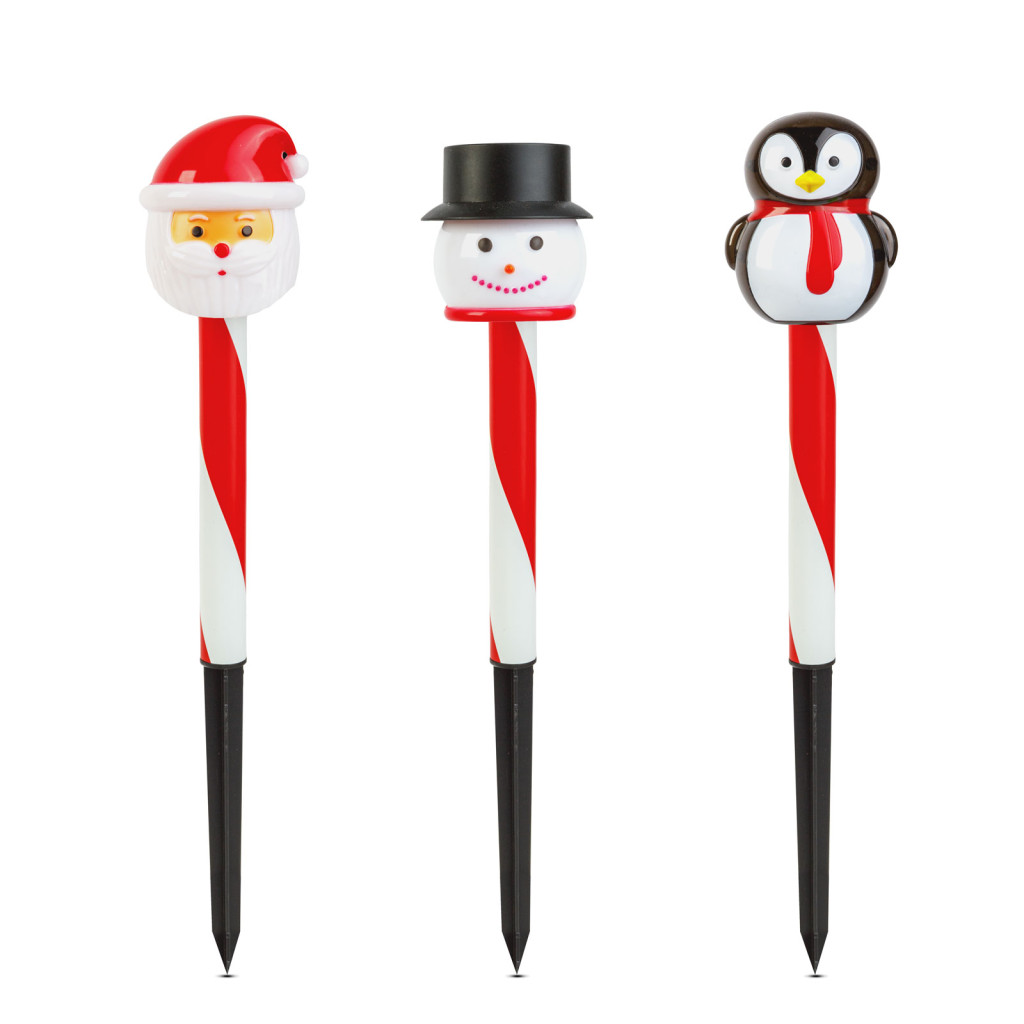 Karácsonyi szolár lámpa - LED - Mikulás, hóember, pingvin - 36,5 x 6 x 6 cm