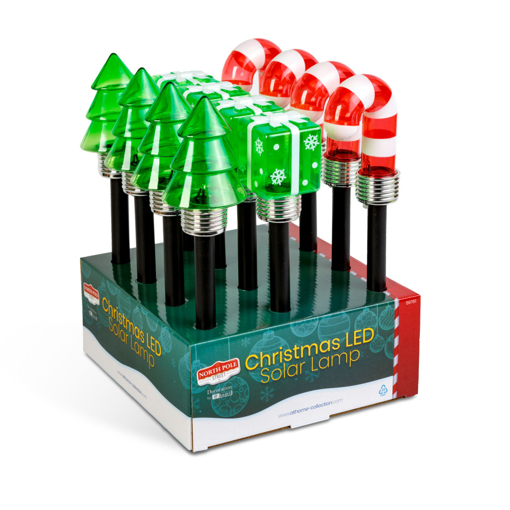 Karácsonyi szolár lámpa - LED - ajándék, fenyőfa, cukorbot - 37 x 7 x 7 cm
