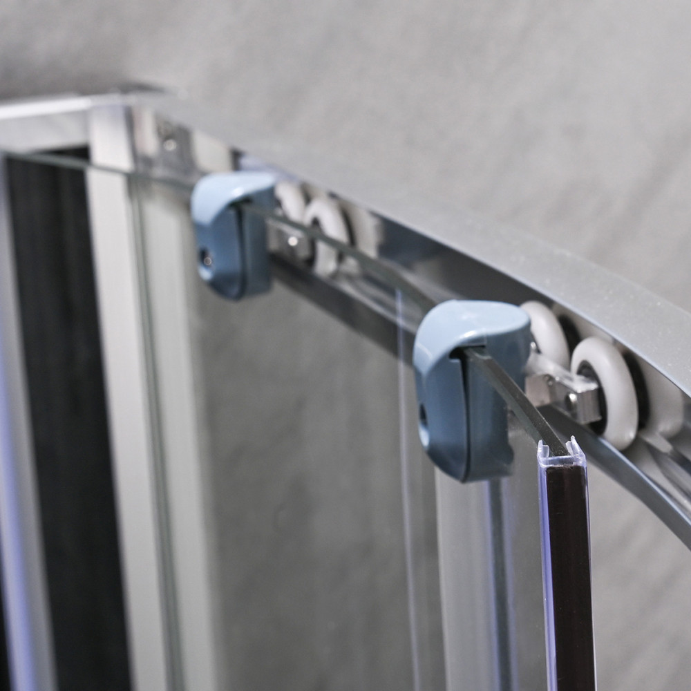 A krómozott alumínium profilok stabil szerkezetet adnak, a fém fogantyú pedig kényelmes fogást biztosít minden használat során. A 225 cm-es teljes magasság tágas belső teret eredményez a megszokottnál magasabb kabinok kedvelőinek.