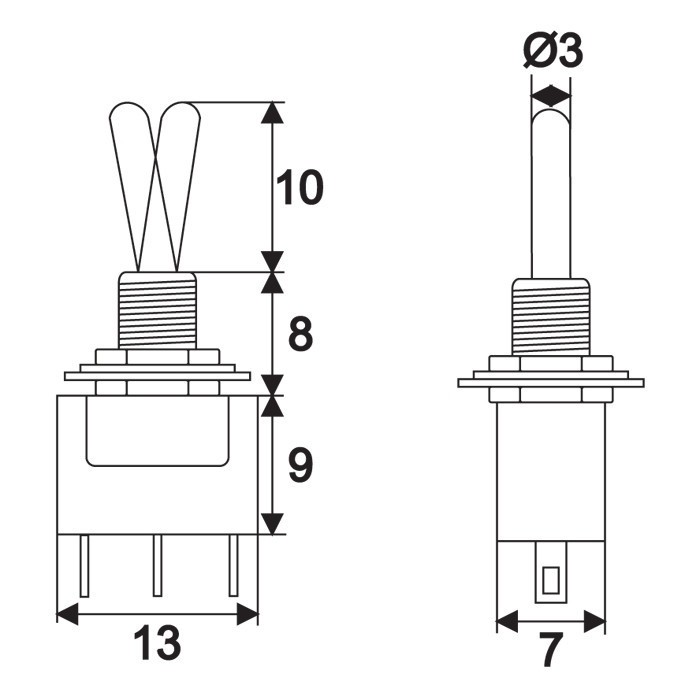Kapcsolókar hossza: 10 mm