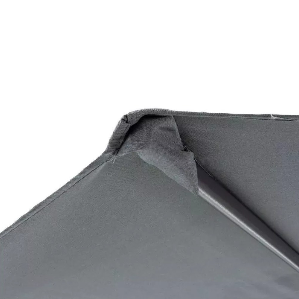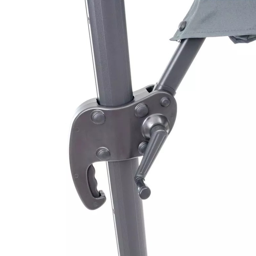 A napernyő szerkezete könnyű és deformációval szemben ellenálló alumíniumból biztosítja a tartósságot és garantálja, hogy a termék hosszú évekig szolgál majd korrózió jele nélkül. Az alapban lévő forgórendszer 360 fokos forgatást tesz lehetővé. A hatlépcsős beállításnak köszönhetően megváltoztathatja magának a ponyvának a szögét, amelyet egy 8 bordás szerkezet erősít meg.