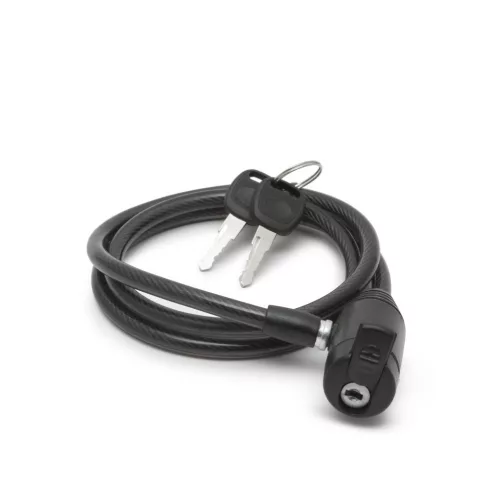 Kerékpár sodrony lakat (kábelzár). A bevont acélkábel ellenállóbb a vágó támadásokkal szemben. Minőségi zárszerkezet, 2 db kulccsal.