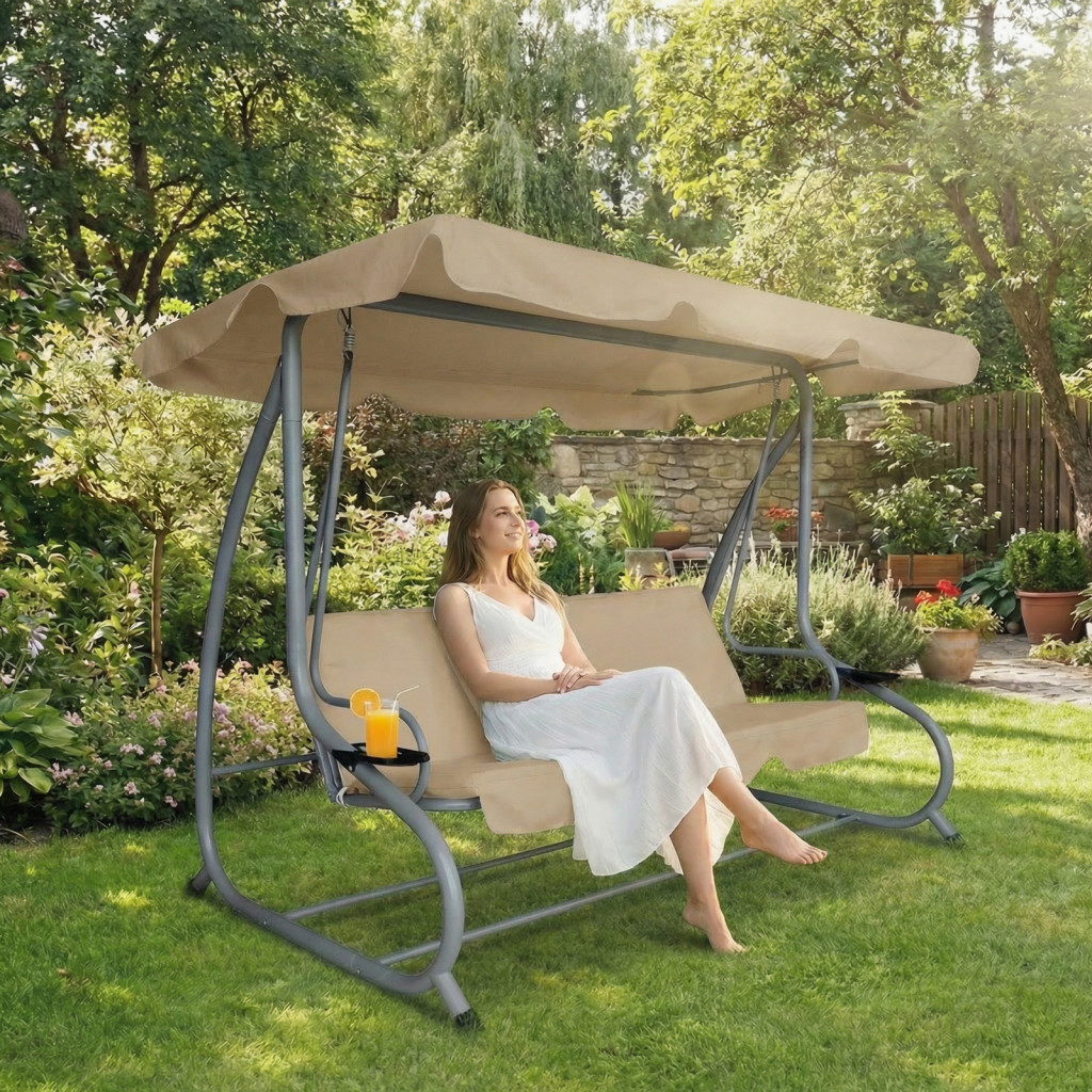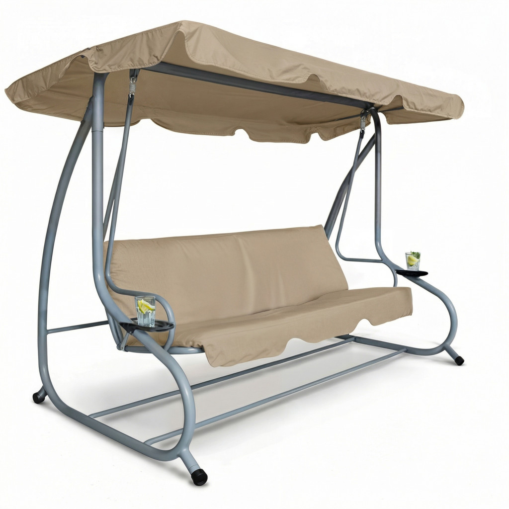 Kerti hintaágy - 200 x 120 x 164 cm - sötét bézs - pohártartóval