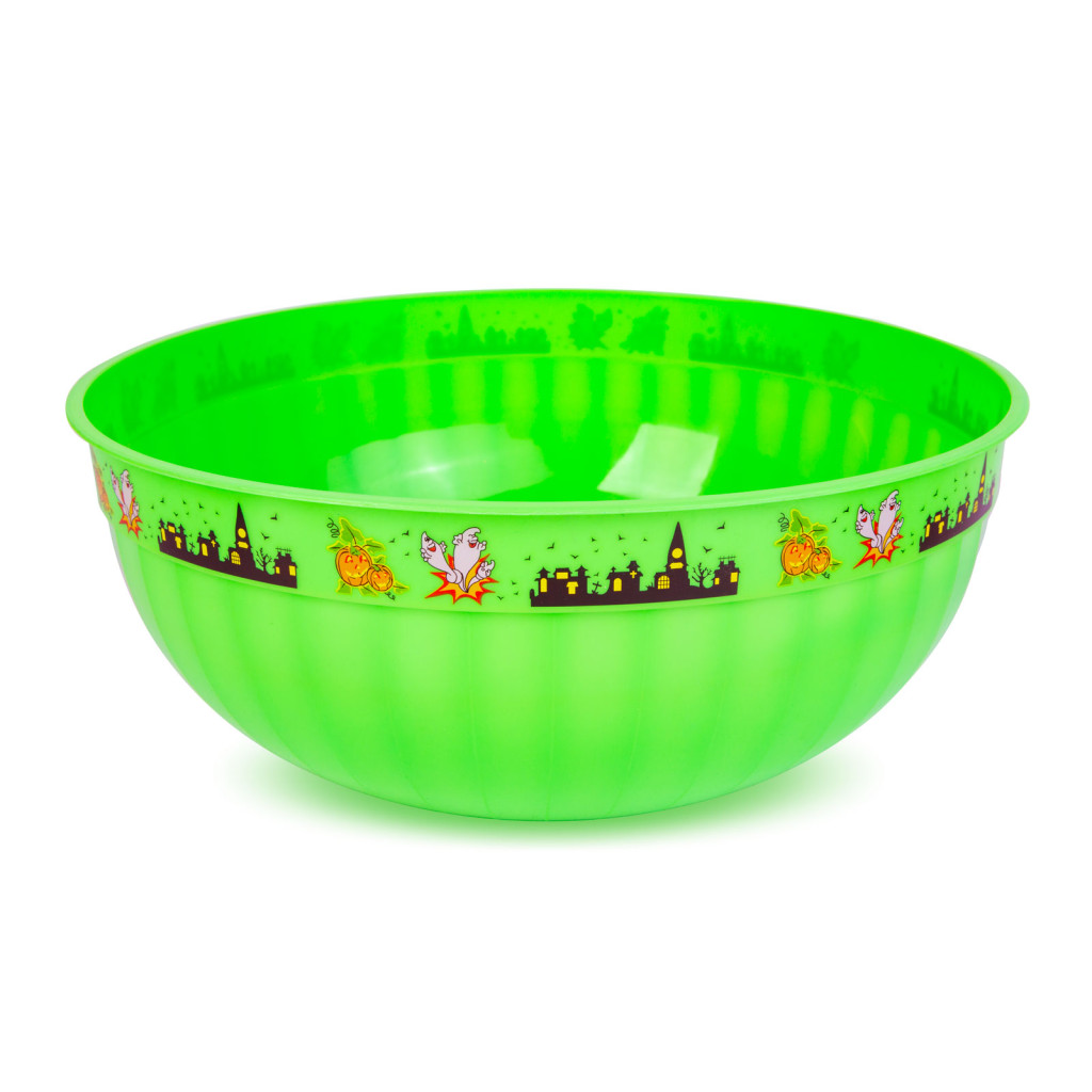 Nagyméretű, kör alakú, peremén Halloween-i motívumokkal díszített kínálótál. Kiváló választás "csokit vagy csalunk" események alkalmával vagy, ha szeretné feldobni a halloweeni asztali dekorációt! A kínálótálba mérete miatt sokminden elfér, legyen szó édességekről vagy akár gyömölcsökről. A színe és formája miatt garantáltan fel fogja hívni a vendégek figyelmét. A rugalmas, mégis strapabíró tál BPA mentes műanyag anyagból készült, amely biztonságos használatot és könnyű tiszíthatóságot biztosít.