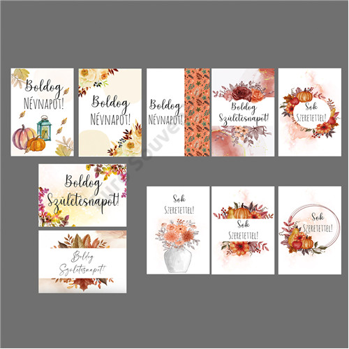 Kísérőkártya 10db/csomag Szülinap,Névnap,Sok szeretettel őszi mintás 4x6cm