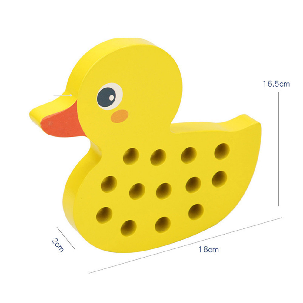 Ez a kiskacsás fűzős fából készült játék nem csupán egy egyszerű játék, hanem egy tanulási eszköz is, amely szórakozás közben fejleszti a gyerekek kéz-szem koordinációját és számos más készségüket. A játék 13 lyukat tartalmaz, amelyeken keresztül a gyerekeknek kemény véggel kell beszúrniuk a madzagot, ezáltal fejlesztve koncentrációjukat, precizitásukat, ügyességüket, finommotorikájukat, figyelmüket és türelmüket.