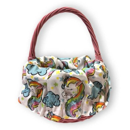 Kötött - festett gyerek kosárka,bélelt (vesszőfonott)