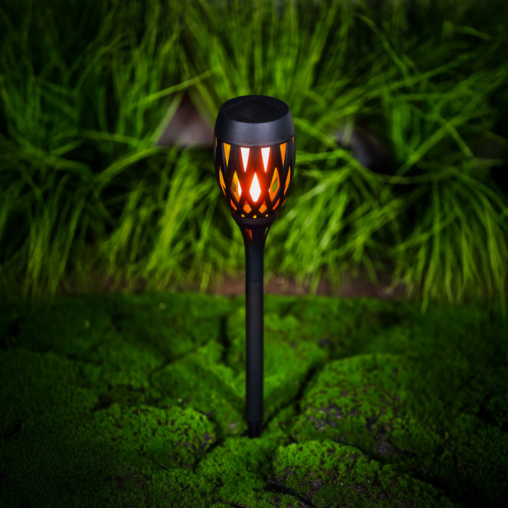 Ez a sokoldalúan használható LED-es szolár lámpa szép lángeffektet nyújt, így hangulatos és dekoratív fényforrást biztosít a kertben, teraszon vagy akár a bejáratnál. A 12 sárga SMD LED lángszerű villogása kellemes melegséget sugároz, miközben energiatakarékos módon, napenergiával működik. A lámpa háromféleképpen is elhelyezhető: leszúrható formában, falra szerelve vagy szabadon állva, így bármilyen kültéri térhez könnyedén igazítható. A fekete műanyag ház időjárásálló kialakításának köszönhetően hosszú távon is megbízhatóan működik. A beépített napelem napközben feltölti az újratölthető akkumulátort, este pedig automatikusan bekapcsol.