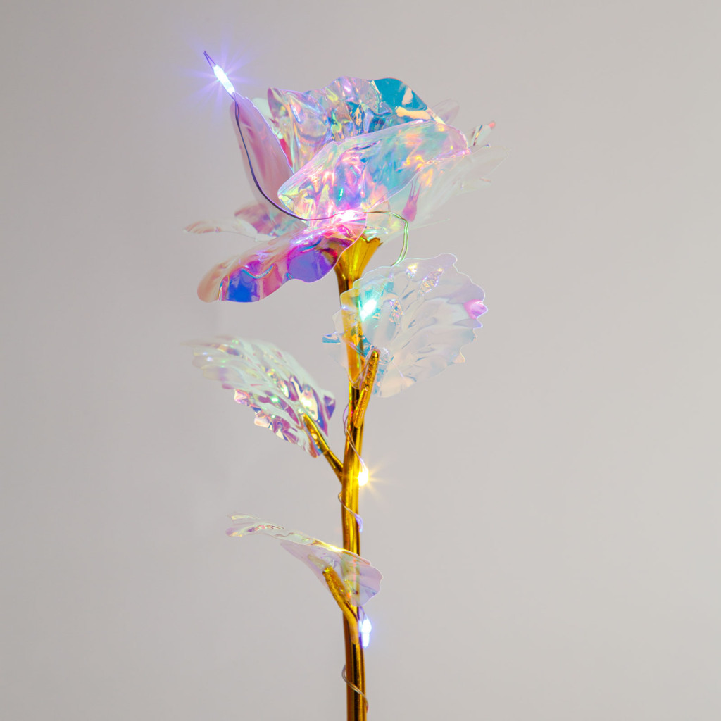 Varázsoljon különleges hangulatot otthonába vagy lepje meg szeretteit ezzel a különleges, LED-es rózsával! Az aranyszínű szár, az élénk piros szirmok és a színes fények varázslatos összhatást keltenek, így a dekoráció minden alkalmat emlékezetessé tesz. A rózsa szirmai és levelei finoman megmunkált műanyagból készültek, míg az aranyszínű szár luxus érzetet kelt. Tökéletes ajándék Valentin-napra, évfordulókra, születésnapokra, karácsonyra vagy bármely különleges alkalomra.