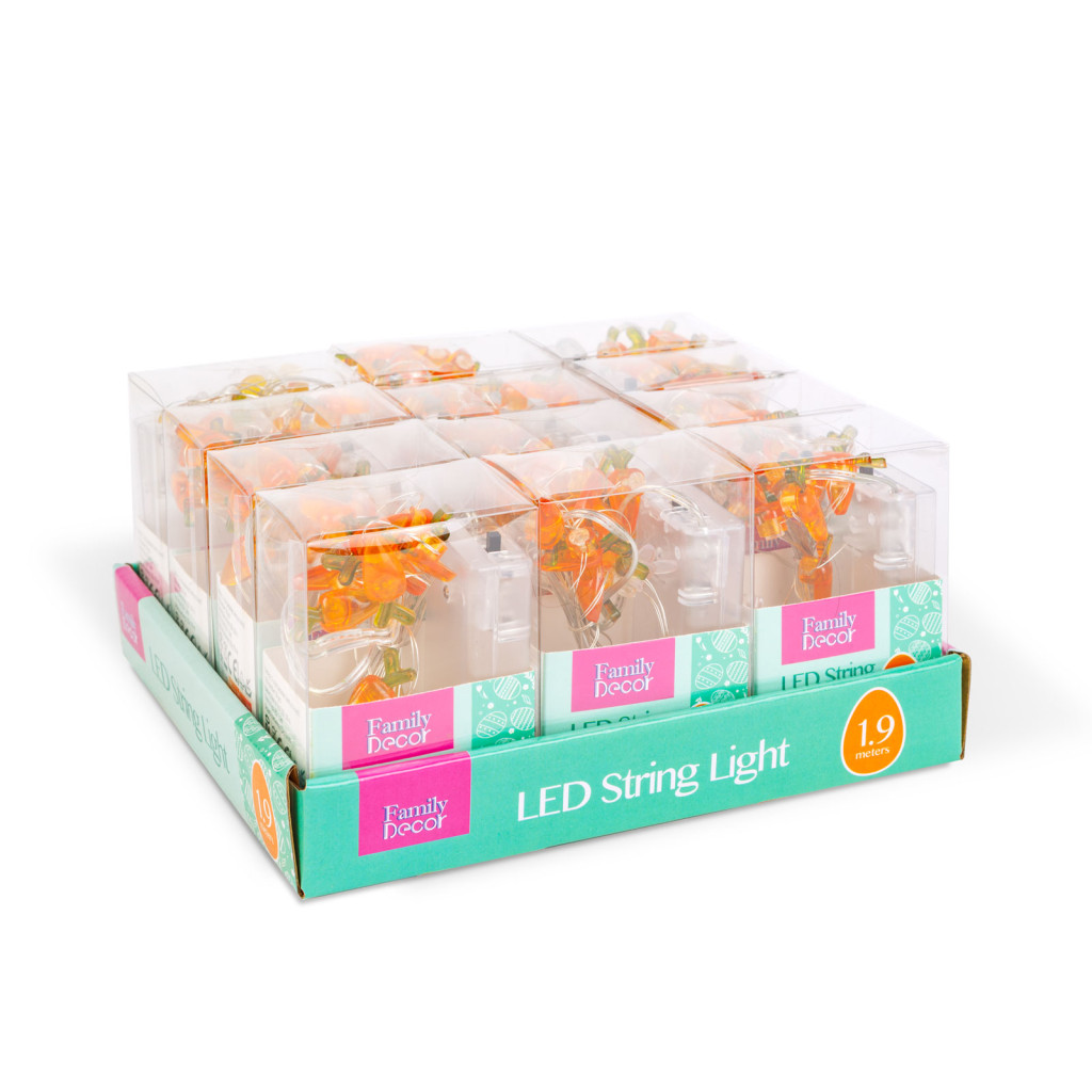 LED fényfüzér - nyuszi és répa - 2 m - 20 LED - 2 x AA