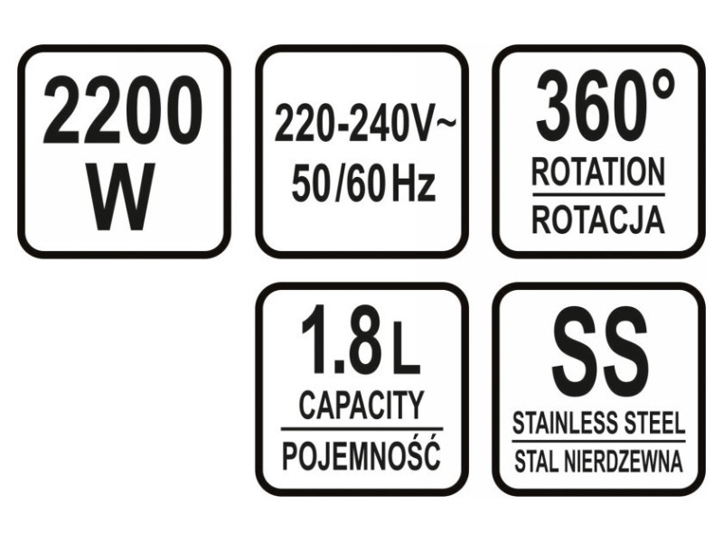 Üveg elektromos vízforraló belső LED gyűrűvel, ami kék fényben világít, amikor a víz forr. A vízforraló nagy teljesítménye gyorsabb vízmelegítést biztosít. teljesítmény: 1850-2200W áramfelvétel: 220-240V 50/60Hz képesség: 1.8l anyag: üveg, rozsdamentes acél, műanyag 360 fokban forgatható beépített melegítőlap ki/be kapcsoló gomb, automatikus kikapcsolás, amikor a víz forr led gyűrű a vízforraló belsejében - kék színű vízszintjelző skálával nyomógombos fedél eltávolítható és mosható szűrő lehetőség a kábel feltekerésére az állvány alatt kábel hossza: 73cm