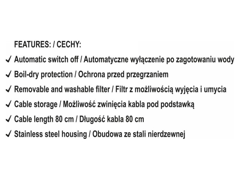 • ki/be kapcsoló gomb, automatikus kikapcsolás, amikor a víz forr