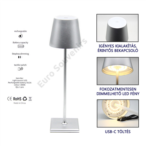 LED ASZTALI LÁMPA 1/10 10x38 cm EZÜST