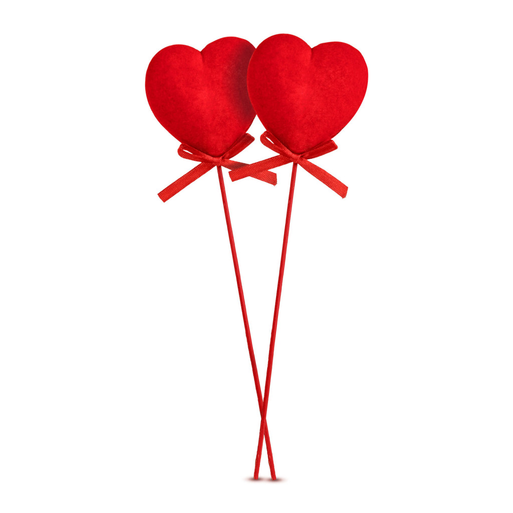 Leszúrható szív szett - piros plüss, habszivacs - 28 cm - 2 db / csomag