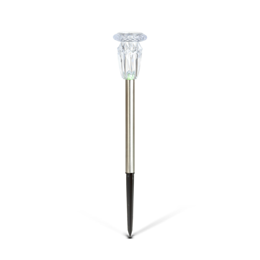 Elegáns kristályhatású lámpa, melyet egyszerűen a kertbe, virágágyásba vagy terasz mellé szúrhat. A felső “gyémánt” formájú búra alatt megbújó melegfehér LED kellemes, diszkrét hangulatvilágítást áraszt, miközben a króm szár és az üveg különleges formája, elegáns megjelenést biztosít.