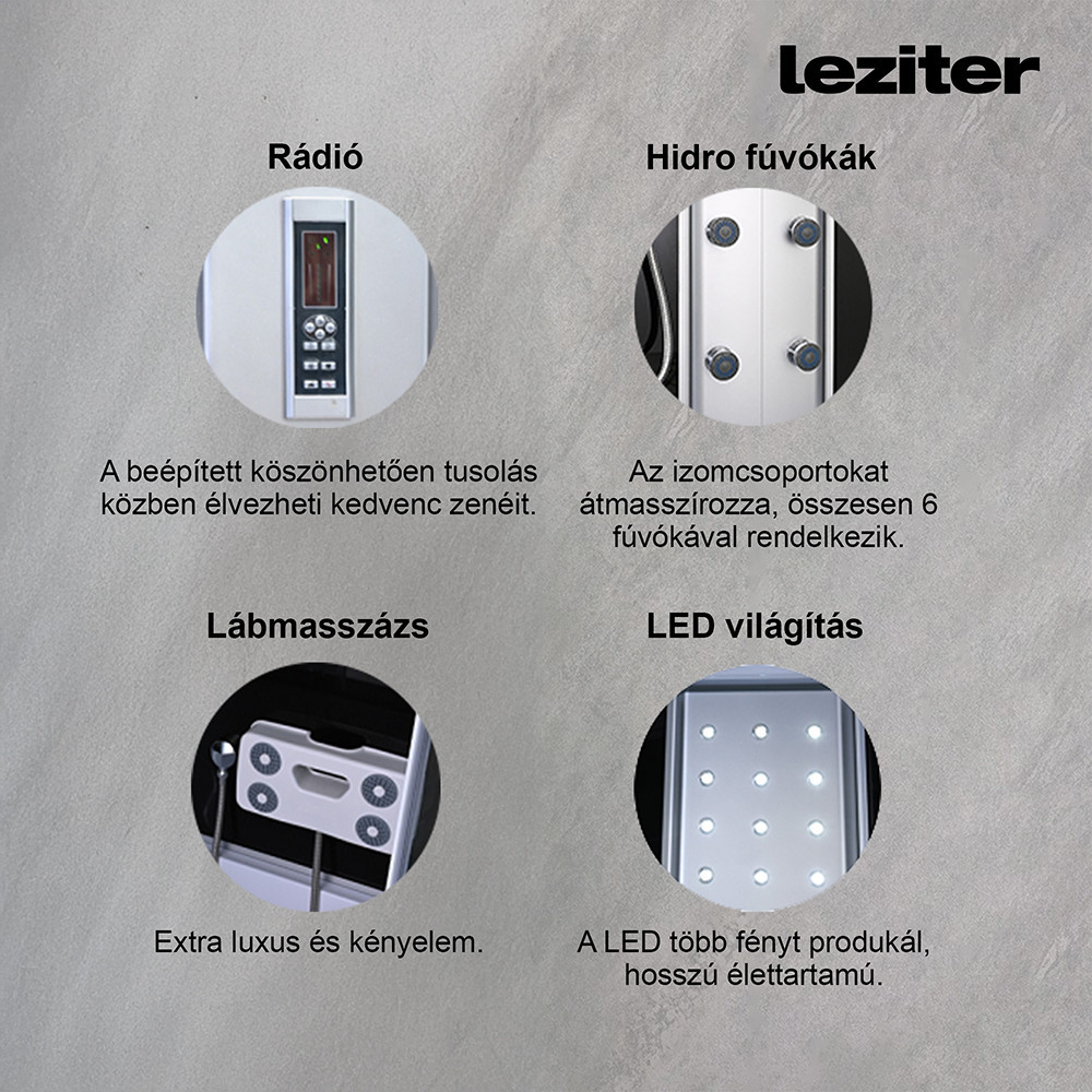 Leziter GM6411 Lia hidromasszázs zuhanykabin balos beépítési oldallal telepítés zuhanytálcára