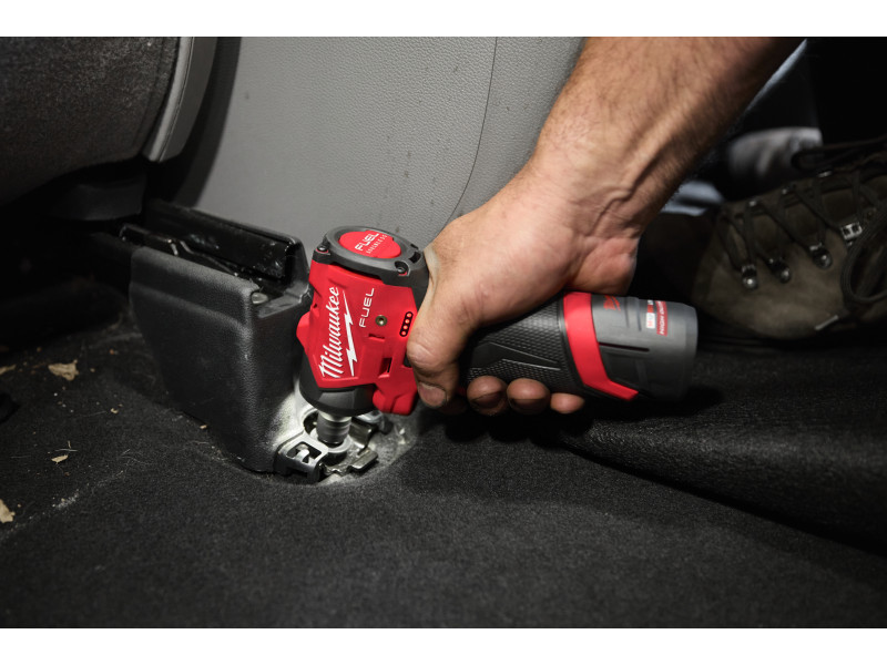 MILWAUKEE Akkus ütvecsavarozó M12 FSCIWF14-0 1/4" négyszög bizt. gyűrűvel (akku + töltő nélkül)