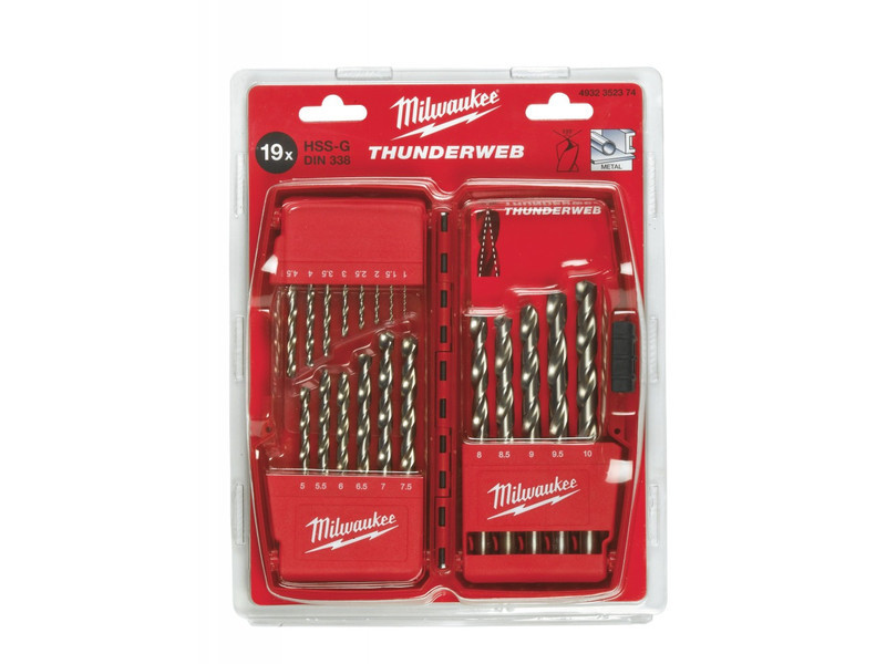 MILWAUKEE Csigafúró készlet 19 részes 1,0-10,0 mm HSS-G DIN 338