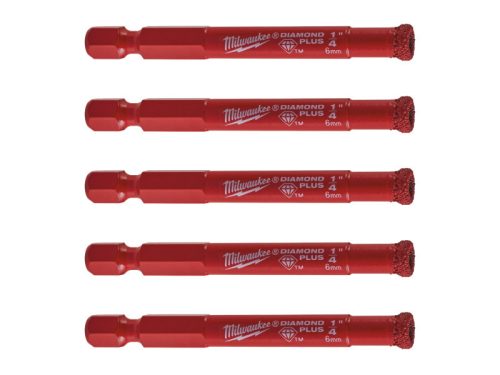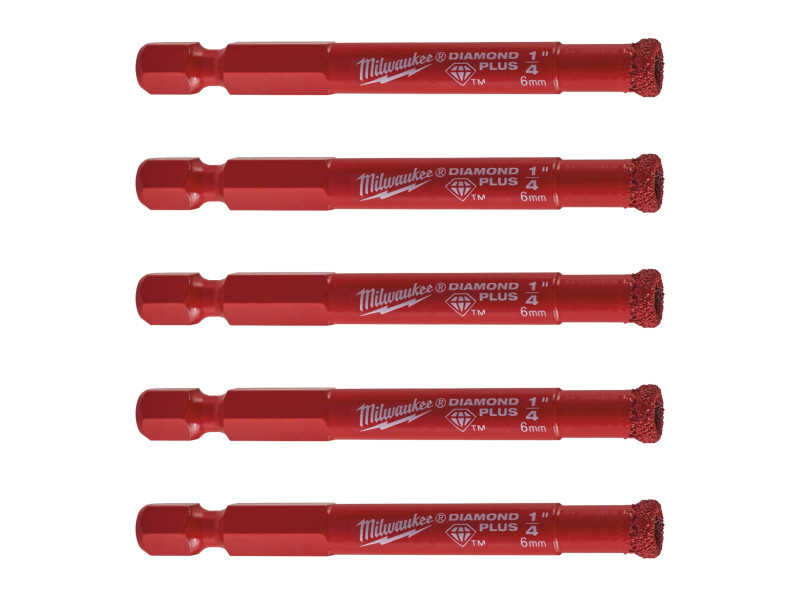 A készlet 5 darab 6 mm átmérőjű gyémántfúrót tartalmaz.