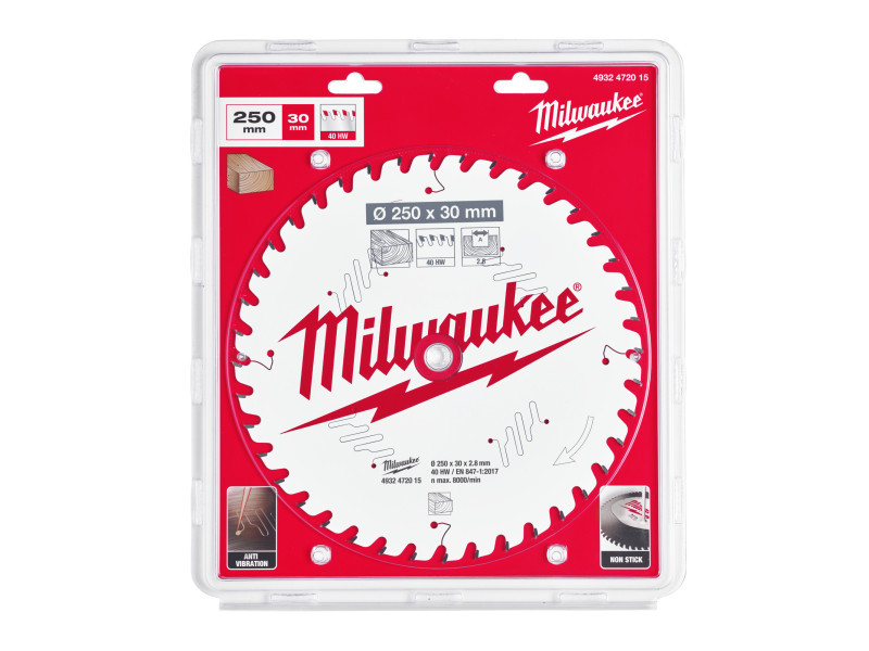 MILWAUKEE Fűrésztárcsa fához 250 x 30 x 2,8 mm /40T ATB