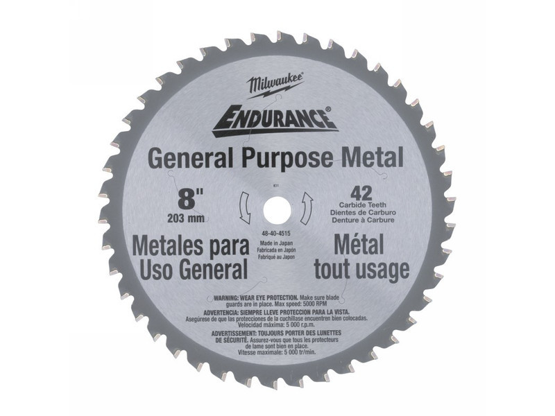 Jellemzők 1. Geometrikus fogkialakítás az optimális teljesítmény érdekében. 2. Magas minőségű karbid és cermet fogak a magasabb élettartamért. 3. Teljes edzettségű préselt fűrészlap test a pontos vágásért. 4. A széles menet gyors és hatékony forgácseltávolítást biztosít. 5. Lézerrel vágott és műgyantával borított körfűrészlap-test a zaj és vibráció csökkentésének érdekében. Folyamatos vágás. A vágási folyamat végén az anyag széle sorjamentes. Hideg vágás. A vágandó anyag a vágás után azonnal használható A vágás gyorsabbá válik. Gyorsabb minden hagyományos vágási módtól. Csökkentett ár. Kevésbé drága, mint az abrazív tárcsa. Csökkentett zaj. Csökkentett vibráció. Teljesen biztonságos: szikramentes, hűtőfolyadék nélküli vágás, mely után az anyag megérinthető. Technikai adatok Acél cső? Acél csatorna? Acéllemez 2,5 mm-ig? Aluminíum? Anyag falvastagság (mm)>2.5 Befogótüske mérete (inch)? Befogótüske mérete (mm)?” Betonacél? Fűrészfogak száma42 Fűrészlap átmérő (inch)8 Fűrészlap átmérő (mm)203 Lágyacél? Mennyiség a csomagban1 Rozsdamentes lemez? Szögvas? Szendvics anyagok (acél, hab, panel)? Vágószélesség (fűrészlap) (mm)1.8 Cikkszám48404515 EAN kód045242134465