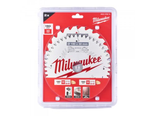 MILWAUKEE Fűrésztárcsa készlet fához 190 x 30 x 1,6 mm / 24T + 48T