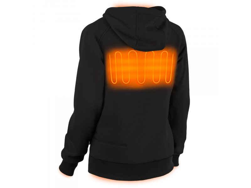 • A szénszálas fűtőelemekkel ellátott M12™ fűthető női kapucnis pulóver M12™ akkumulátorral működik, amely hőt hoz létre és vezet el a mellkason és a háton.