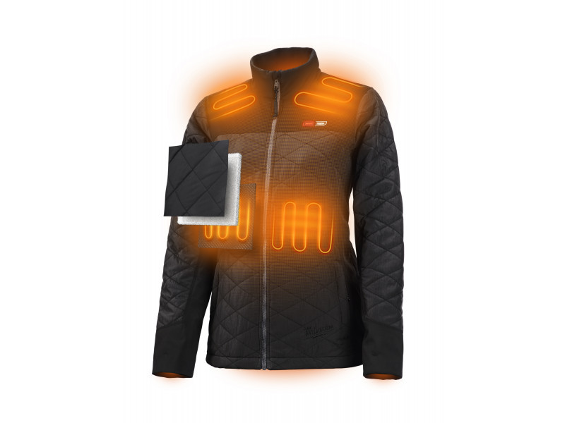Az M12™ REDLITHIUM™ akkumulátor technológiával működő hibrid női kabátok szénszálas fűtőelemek segítségével állítják elő a hőt és terjesztik szét a mellkason és a háton