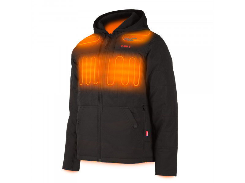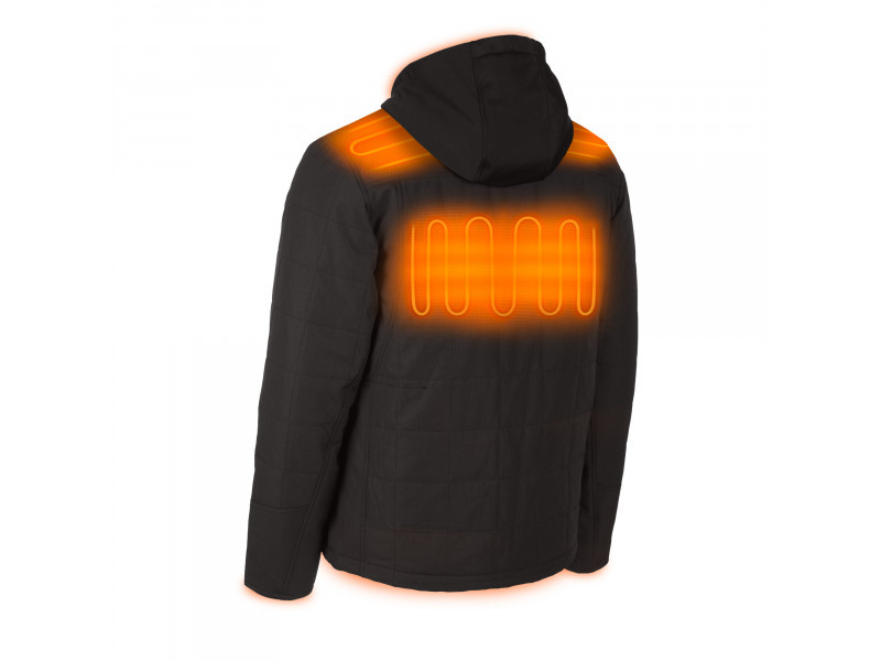 • A szénszálas fűtőelemekkel ellátott M12™ fűthető kabát M12™ akkumulátorral működik, amely hőt hoz létre és vezet el a mellkason, a háton és a vállakon.