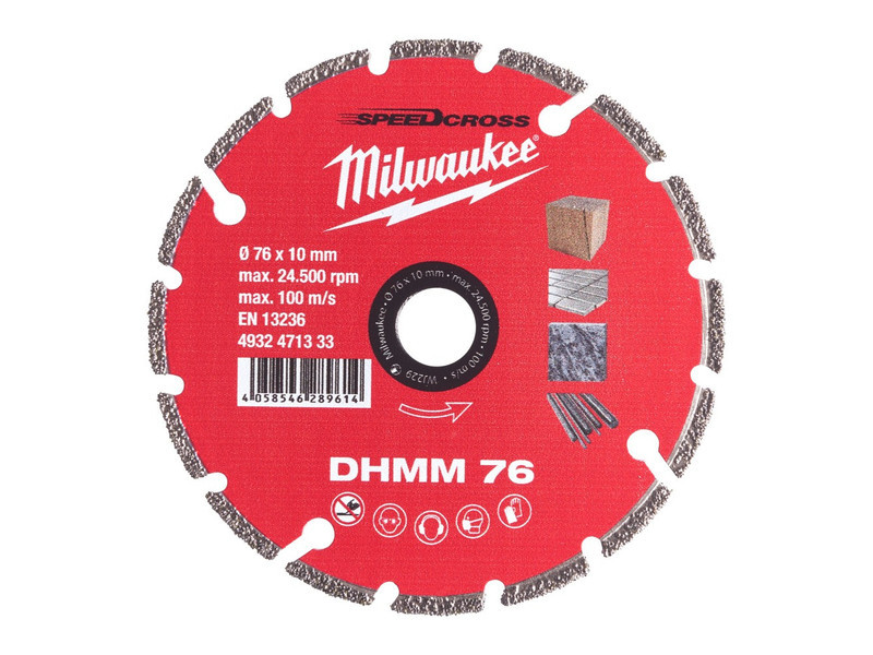 MILWAUKEE Gyémánt vágókorong 76 x 1,2 x 2,2 x 10 mm szegmentált DHMM