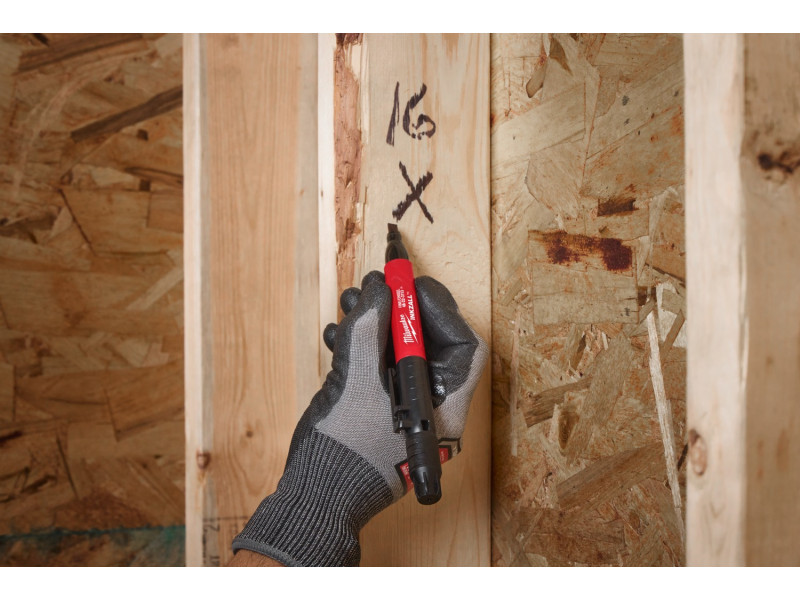 Tartós jelölőhegy, amely betonra, OSB-re és durva munkaterületi felületekre ír.