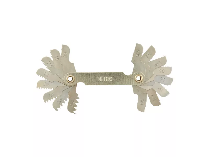 16 mérőlemez a különféle menetméretek ellenőrzéséhez.