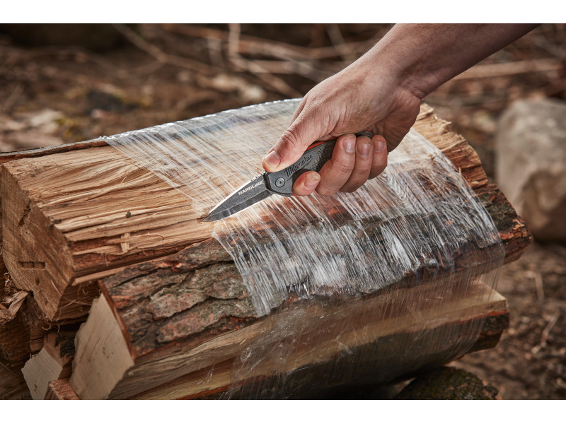 • Fogazott 75 mm-es penge és lyukasztóhegy – Ideális az anyagok átszakításához, a hegy pedig irányított lyukasztást biztosít