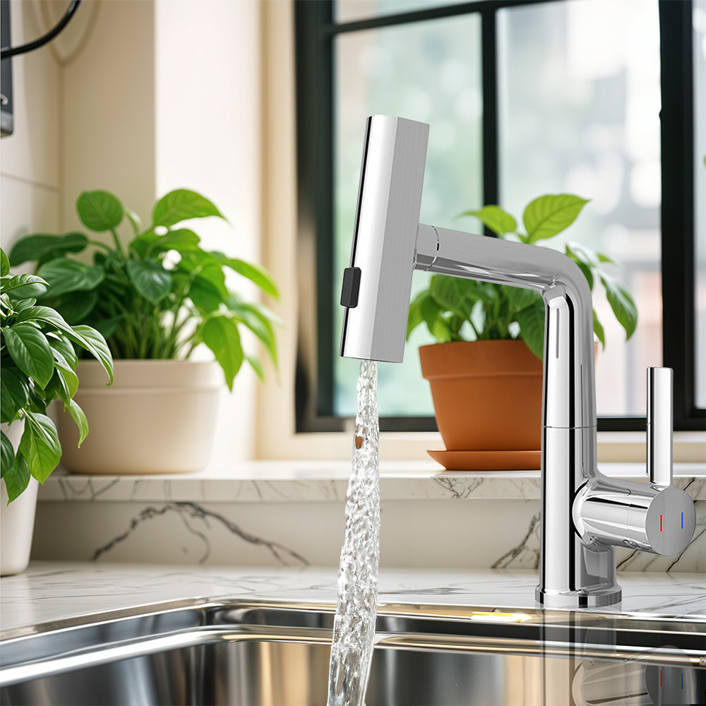 A kihúzható fejnek köszönhetően könnyen elérheted a mosogató minden részét, míg a teleszkópos funkció extra hosszt biztosít, hogy a legnehezebben elérhető helyeket is könnyedén megmosd.
