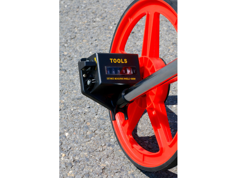 Mérőkerék a könnyű méréshez - a felület külső és belső méretei, vonalak stb., összecsukható szerkezet, védőtok a biztonságos kezeléshez szállításkor, mérési tartomány 10 cm-től 9999,9 m-ig.