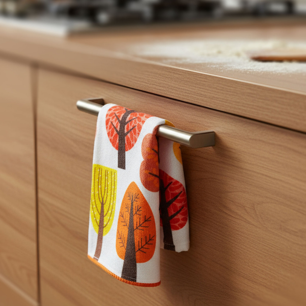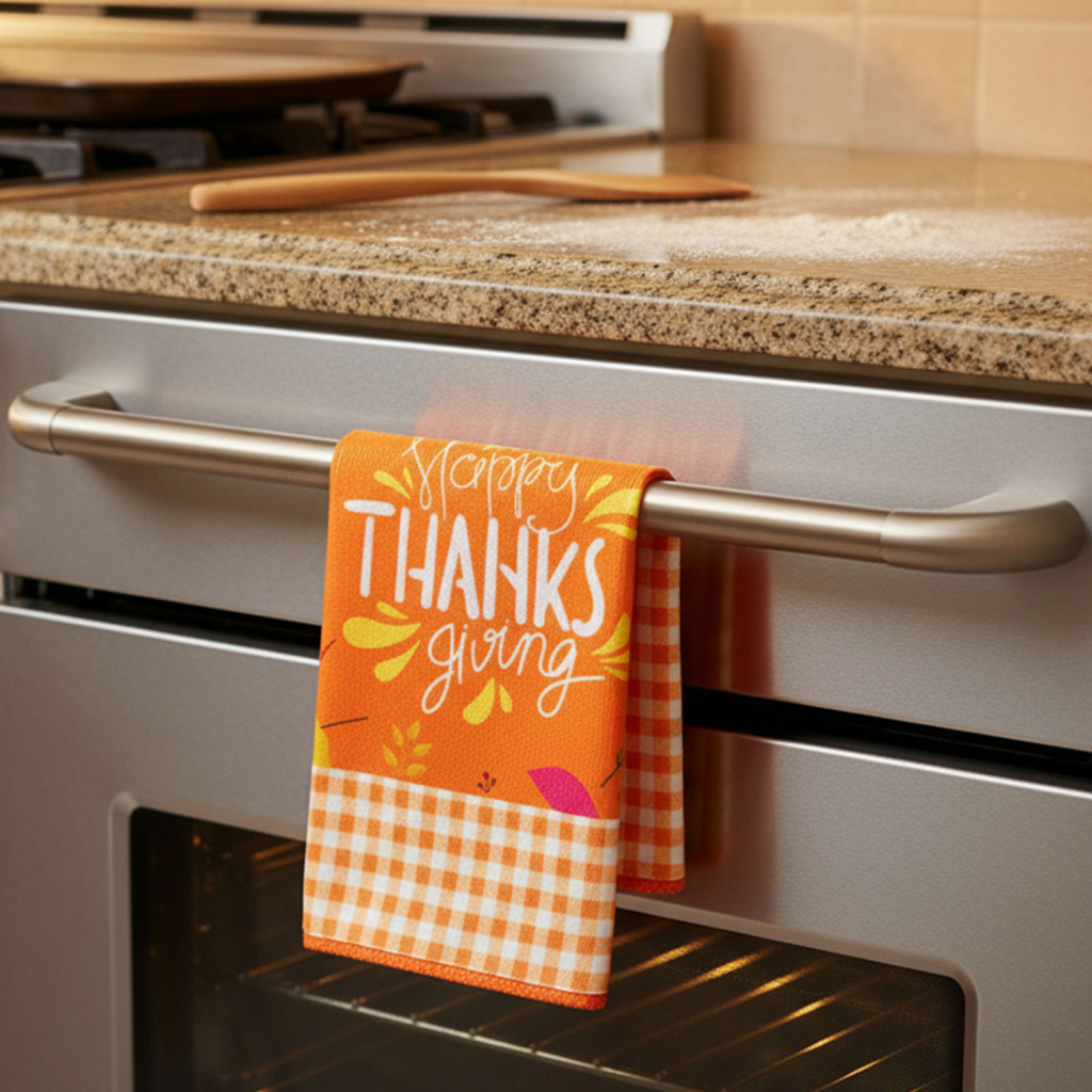 Öltöztesse otthonát őszi hangulatba! Nem maradhat ki a konyha, fürdőszoba sem ezzel a mikroszálas törlőkendővel! Az egyik kendő színes, stilizált őszi falevelekkel és fákkal díszített, míg a másik, a hálaadás ünnepéhez illő „Happy Thanks giving” felirattal és narancssárga árnyalatokkal teszi hangulatossá a konyhát.