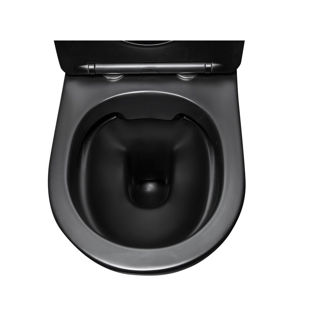 A legújabb tervezési trendeknek megfelelően készült. A fekete szín elegáns kivitele egyedi karaktert kölcsönöz a terméknek. Anyaga kiváló minőségű szaniter kerámia. A perem nélküli KERRA PRO CLEAN öblítőrendszer megkönnyíti a tisztítást. A készlet tartalmaz egy lassan záródó (soft-close) duroplastból készült ülőkét is, könnyű szerelési funkcióval. A csészén nincsenek látható helyen rögzítések, a készlet tartalmazza az ún rejtett rögzítőelemeket.