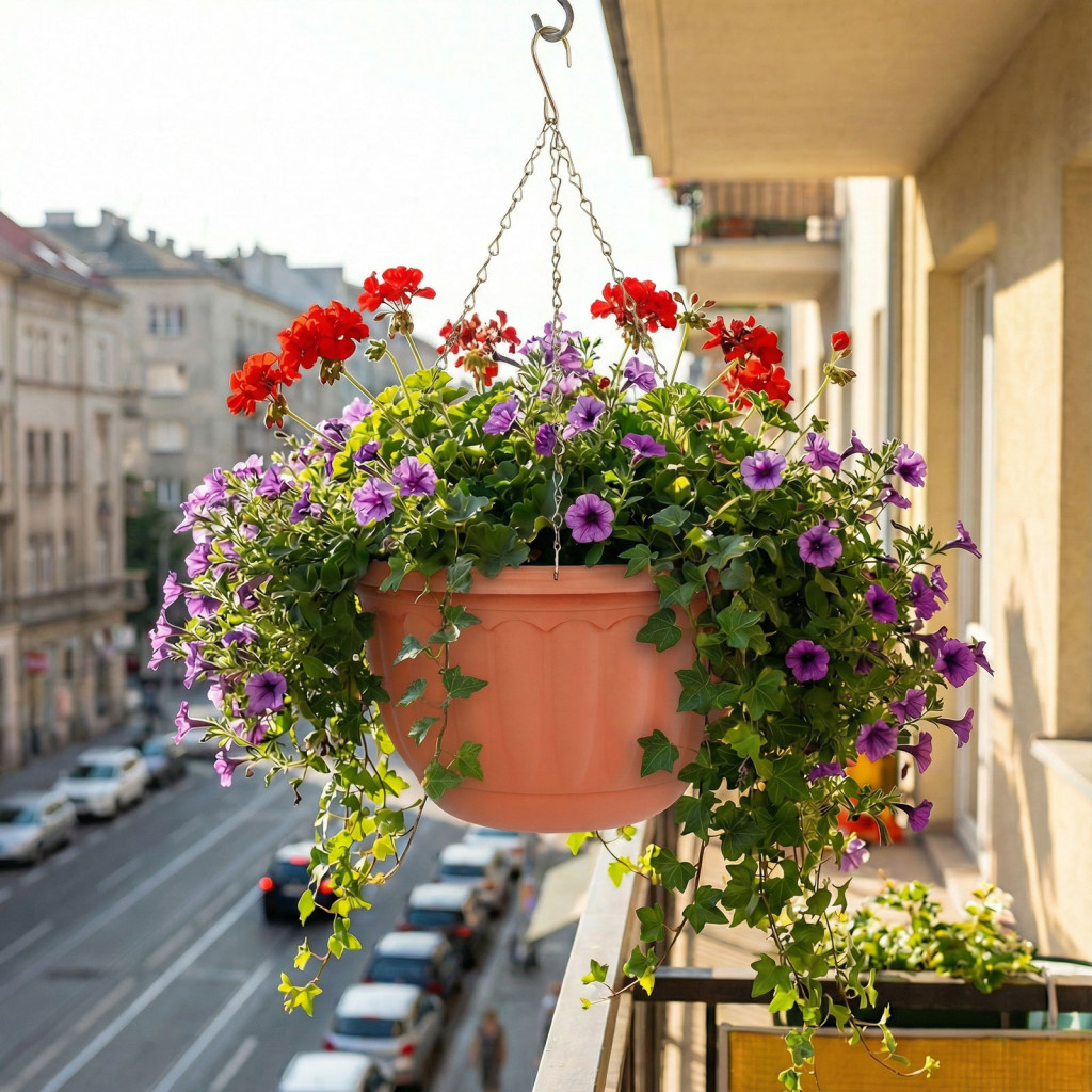 Tegye hangulatossá kertjét vagy erkélyét ezzel a praktikus, függesztett műanyag virágcseréppel! A tartós, időjárásálló anyagból készült kaspó arany színű lánccal és kampóval rendelkezik, így biztonságosan felfüggeszthető korlátra, pergolára vagy teraszra. Tökéletes választás virágok, futónövények és zöld dísznövények elhelyezésére.