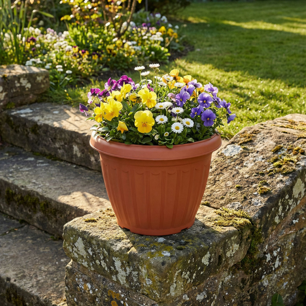 Ez a műanyag virágcserép alátéttel praktikus és dekoratív megoldást kínál otthoni növényei számára. A tartós, könnyű anyag hosszú élettartamot biztosít. A cserép terrakotta színben érhető el, így bármilyen enteriőrbe vagy kertbe könnyen illeszthető.