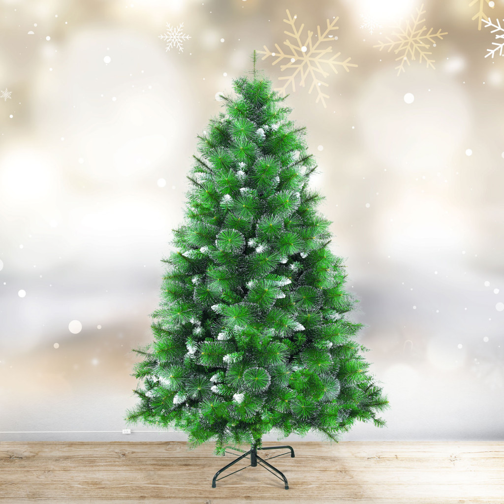 Teremtsen meghitt ünnepi hangulatot ezzel a gyönyörű havas műfenyővel! A sűrű fenyőágak végét hó borítja, amely természetes és elegáns megjelenést kölcsönöz a karácsonyfának. A gondosan kidolgozott tűlevelek és az ágak elrendezése tökéletes alapot biztosítanak kedvenc díszei számára. Könnyen összeállítható és évről-évre újra felhasználható. Az időtálló anyagok biztosítják, hogy hosszú ideig megőrizze szépségét, anélkül hogy színe megfakulna vagy levelei lehullanának.