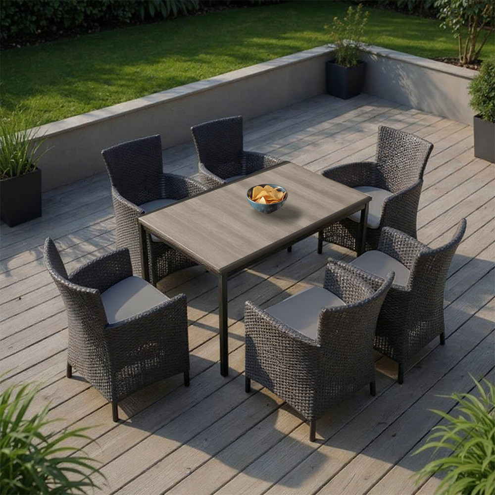Nadia 6+1 személyes műrattan-hatású kerti garnitúra – kőris & grafit