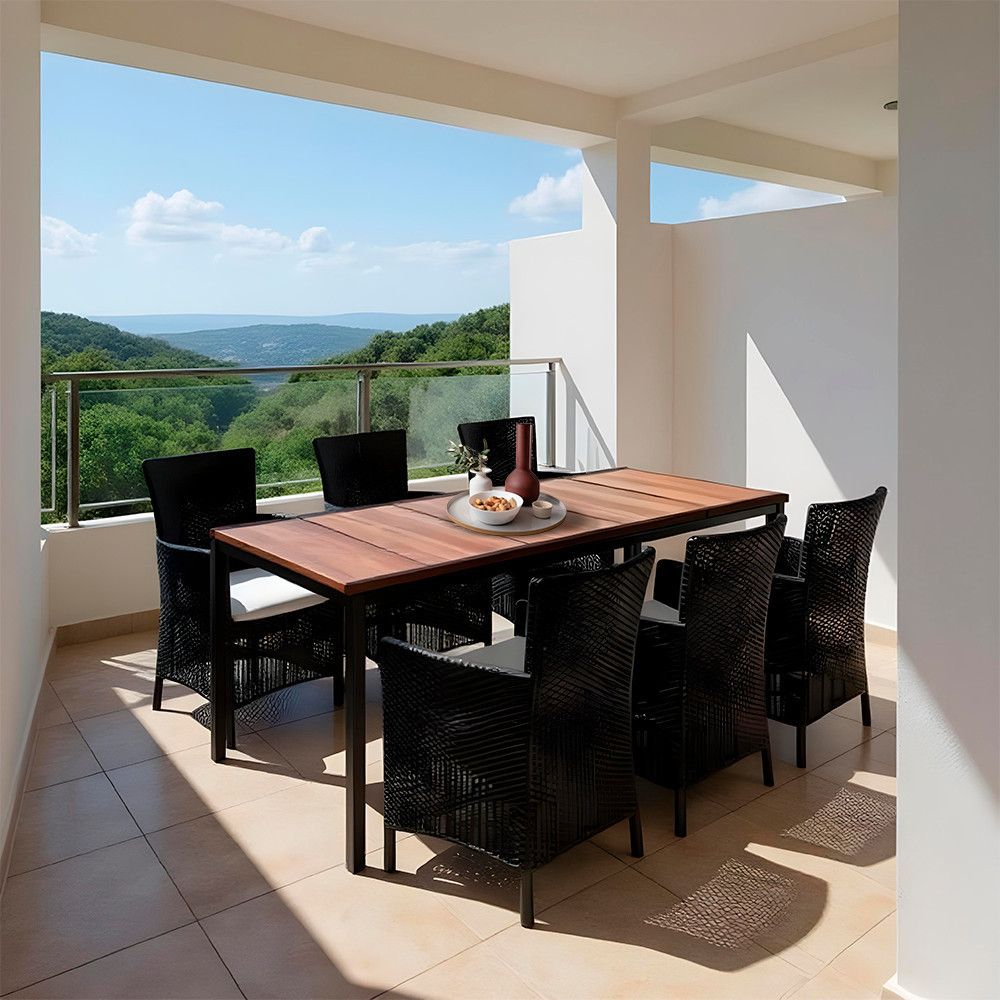 • Összeállítás: 6 db Iowa Rattan Style karfás fotel + 1 db Porto 200 étkezőasztal