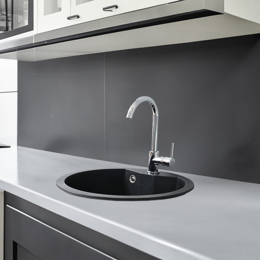 Praktikus kivitel: Az álló, egykaros kialakítás lehetővé teszi a vízszabályozást egyetlen mozdulattal. Ez különösen hasznos lehet főzés közben.