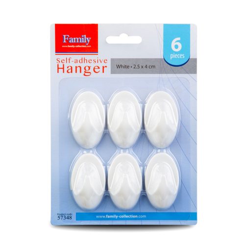 6 darabos akasztó szett, mely öntapadó hátuljának köszönhetően stabilan fennmarad a síkfelületeken.