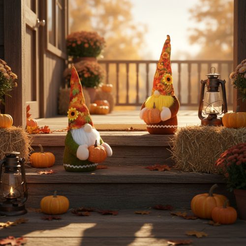 Őszi dekoráció - manó tökkel - 2 féle - 35 x 13 x 13 cm