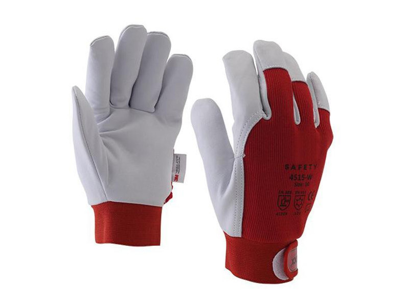 Törtfehér kecske színbőr tenyér Meleg, 3M™ Thinsulate™ bélés Köröm- és érvédő Piros pamutkézhát Tépőzáras csuklórész